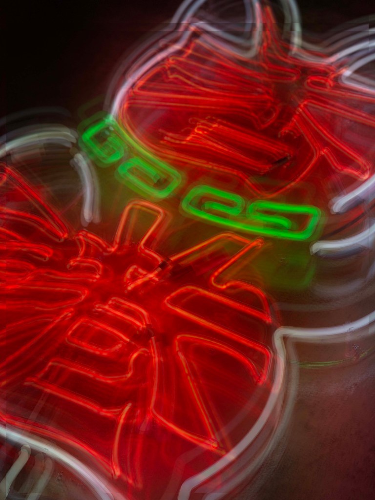Most of the time, we would have the name of the venue bent with neon glass on streetsigns. In this artwork, I would like to give a modern interpretation of the name of the Hub (“華埠”): I have the name placed behind the pawn shop element, where viewers see part of the name only. I believe that the future of neon can stretch beyond its commercial value and embrace many other functions and purposes. To ensure that this enigmatic medium lives on we must push beyond conventional boundaries and embrace the risks involved in exploration and experimentation.
