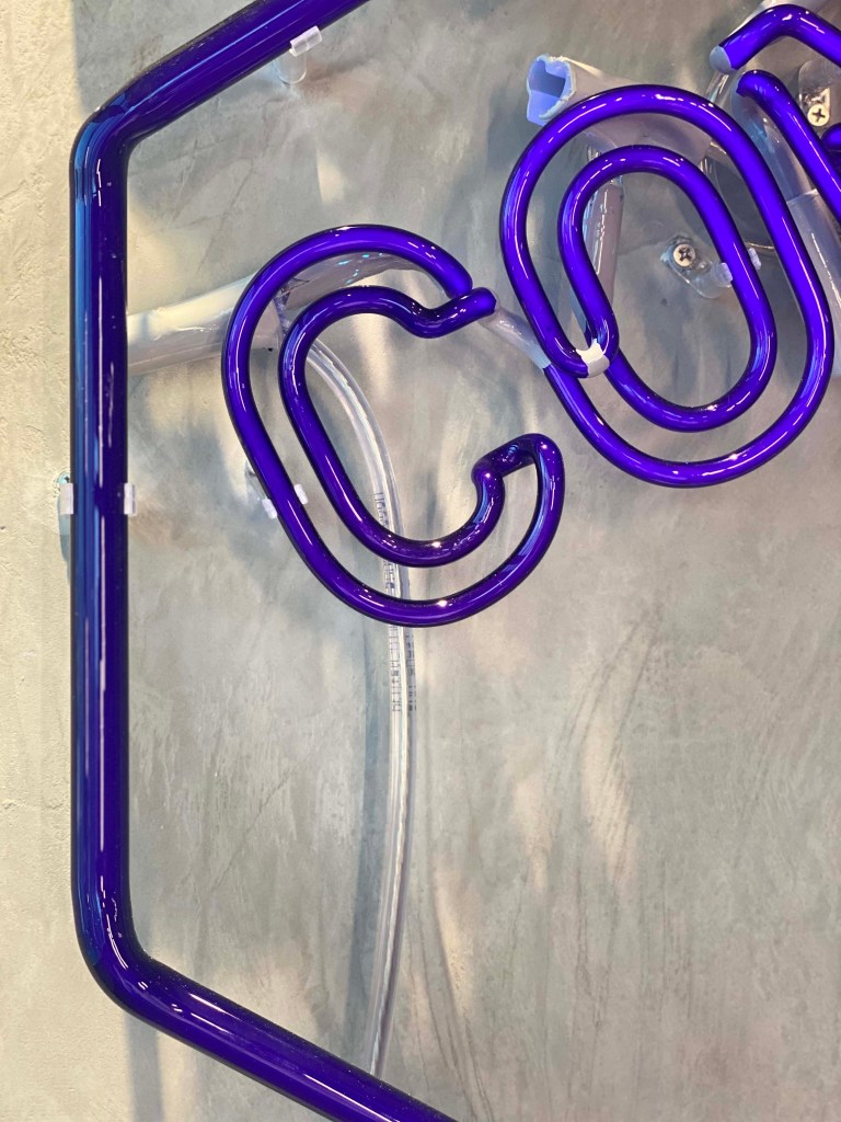 🇮🇹 The classic cobalt blue Murano neon tubes pulled from Technolux in Italy were used for this piece, so that the piece will also be seen as blue during the day, even without it turning on💙 If not, usually a “normal blue neon tube” will be seen as a white tube when not turned on.