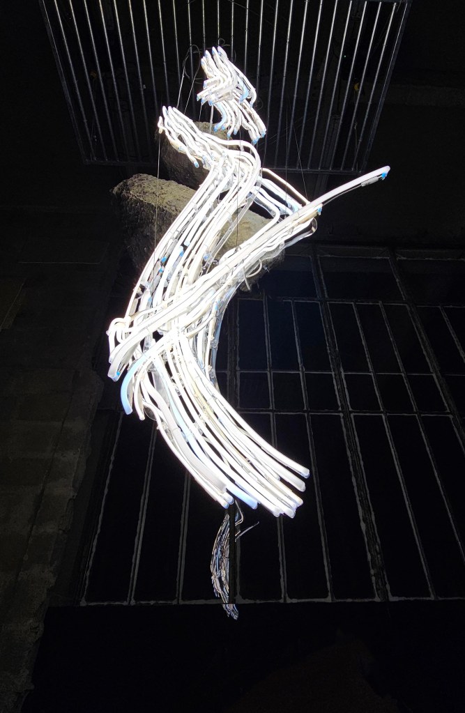 « Courants » est une installation d’art néon suspendue qui explore le flux de l’eau et de l’électricité, tous deux animés par des courants invisibles. Elle explore la tension entre la recherche de la perfection dans les imperfections à travers la calligraphie chinoise, elle intègre des matériaux recyclés pour mettre en avant la durabilité et la transformation.