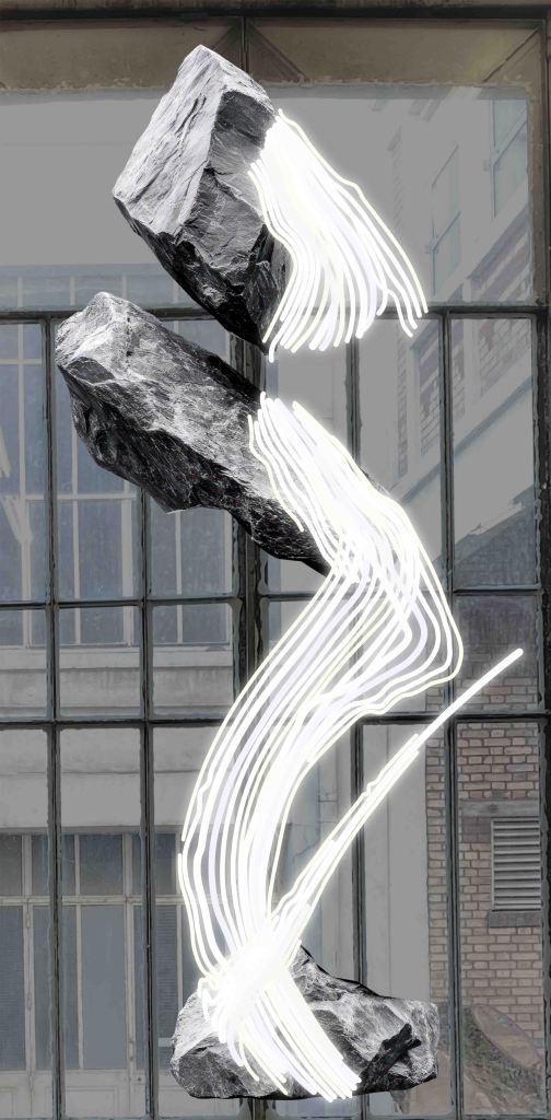 J’explore également la fusion de la pratique du néon avec les techniques de sculpture sur verre pour imiter le mouvement et la texture de l’eau. Dans cette exploration, j’établis des parallèles entre les courants d’eau et les courants électriques qui animent le néon. Cette connexion entre les flux naturels et l’énergie humaine devient un axe conceptuel clé de ma recherche. En capturant ces « courants » dans la lumière et la forme, je vise à créer des installations qui brouillent la frontière entre le naturel et le technologique.