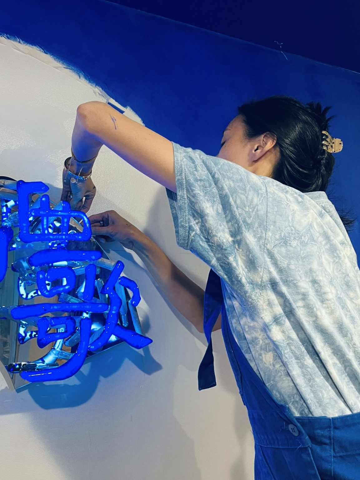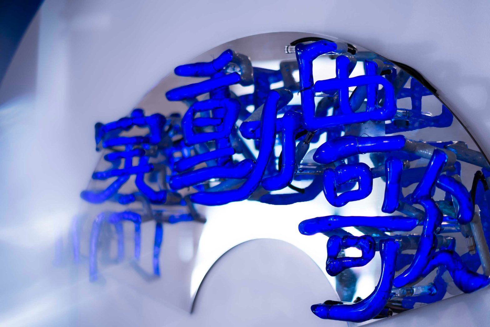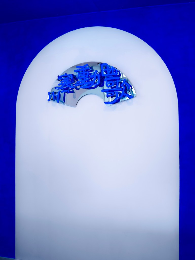En tant que nouvelle pièce de ma collection « Bleu et Blanc », « Néon de calligraphie chinoise – Karaoké » est une pièce expérimentale qui explore l’alternative de présenter la calligraphie chinoise en néon expérimental avec la technique unique française et le verre borosilicate français.