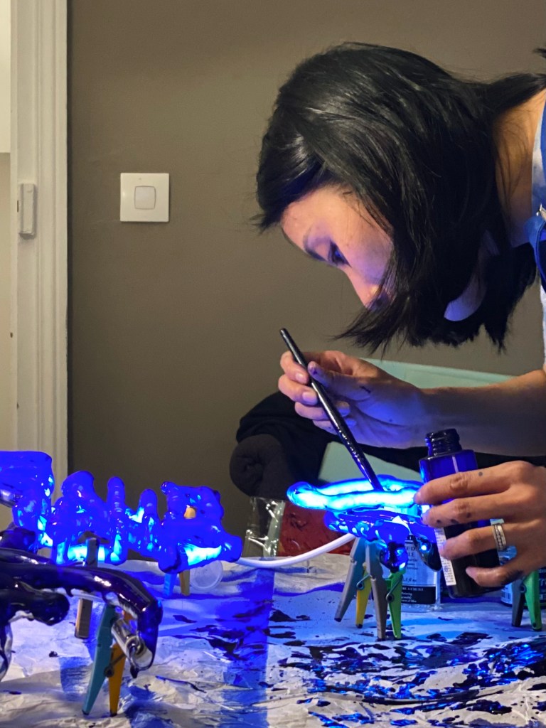 Similar to the situation of creating the piece, there were a lot of unexpected challenges and struggles that occurred despite of technical difficulties. Despite the unfavourable circumstances, I still enjoy making the piece every time I “touch” the fire and glass. As a modern and personal interpretation of the “loud moving songs” from Li Bai’s poem, I connect this feeling with the Cantonese pop karaoke songs I grew up with. These songs were in my mind during my creation and kept me going.
