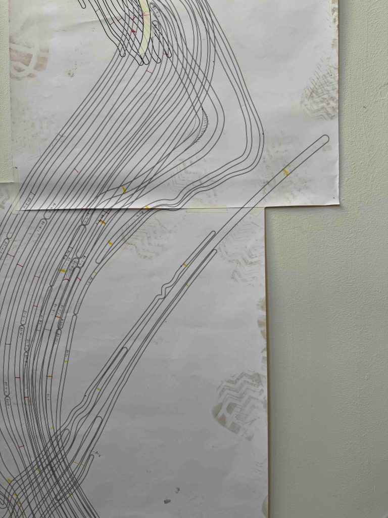 Chaque installation enregistre sa propre fabrication : marques de chaleur inscrites dans le papier de patron, verre modelé par le feu, empreintes de doigts dans la peinture, stigmates et adaptations liés au transport, ainsi que révisions accumulées. À l’image du langage et du cerveau, l’œuvre ne revient pas à un état fixe : elle s’adapte. Au fil des installations successives, « Terre » survit par la révision plutôt que par la perfection, portant simultanément des formes anciennes et nouvelles. Elle reflète ainsi la manière dont des forces invisibles — géologiques, linguistiques et humaines — continuent de façonner à la fois le paysage et la pensée